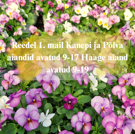 Vaata kinkekaarteKanepi Aiand on pereettevõte, mis on kasvanud ühest väikesest aiandist kolme aianduskeskusega ettevõtteks. Kasvatame südamega ja müüme rõõmuga – juba aastast 1993.